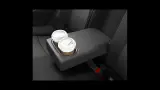 後部座席にはセンターアームに2つのドリンクホルダーが配置されています。また、足元にはコンセントが備わっており、電子機器の充電が可能です。背面ポケットも付いているため、小物の収納にも便利ですが、全体的に収納スペースは少なめです。