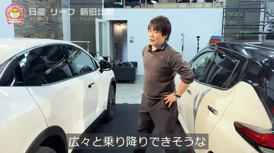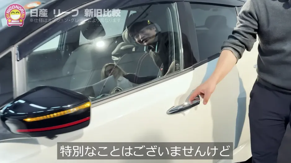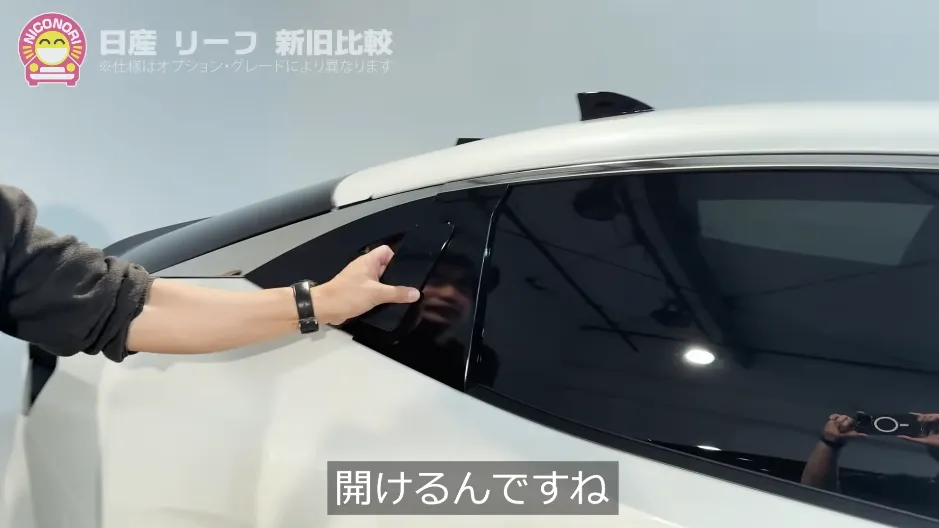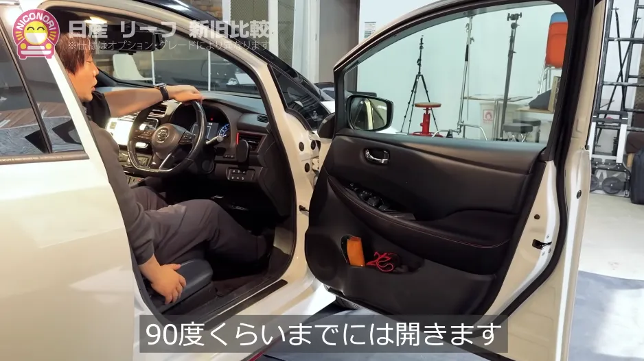 新型はドアに重みがありますね。バッテリーをしっかり守るという役目があるので……リーフの大きな特徴であるこのしっかり感が、新型ではさらに進化していますね。ドアの開口部は狭まりましたが、乗り降りのしやすさは十分優れていると思います。