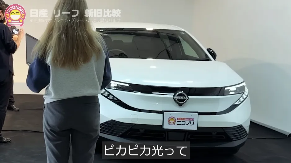 安田さん: 私のリーフは旧型になってしまいましたね……。新型を見てみると、フロントマスクが全く違いますね。横幅が20mm広くなっているので、ワイド感が増しました。