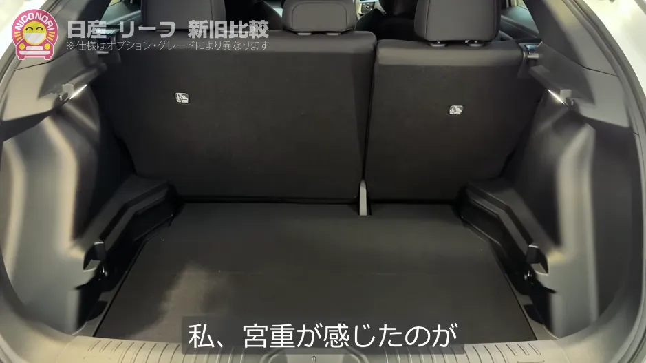 宮重さん: 旧型リーフの荷室は、底が少しへこんでいるタイプになっているんですね。